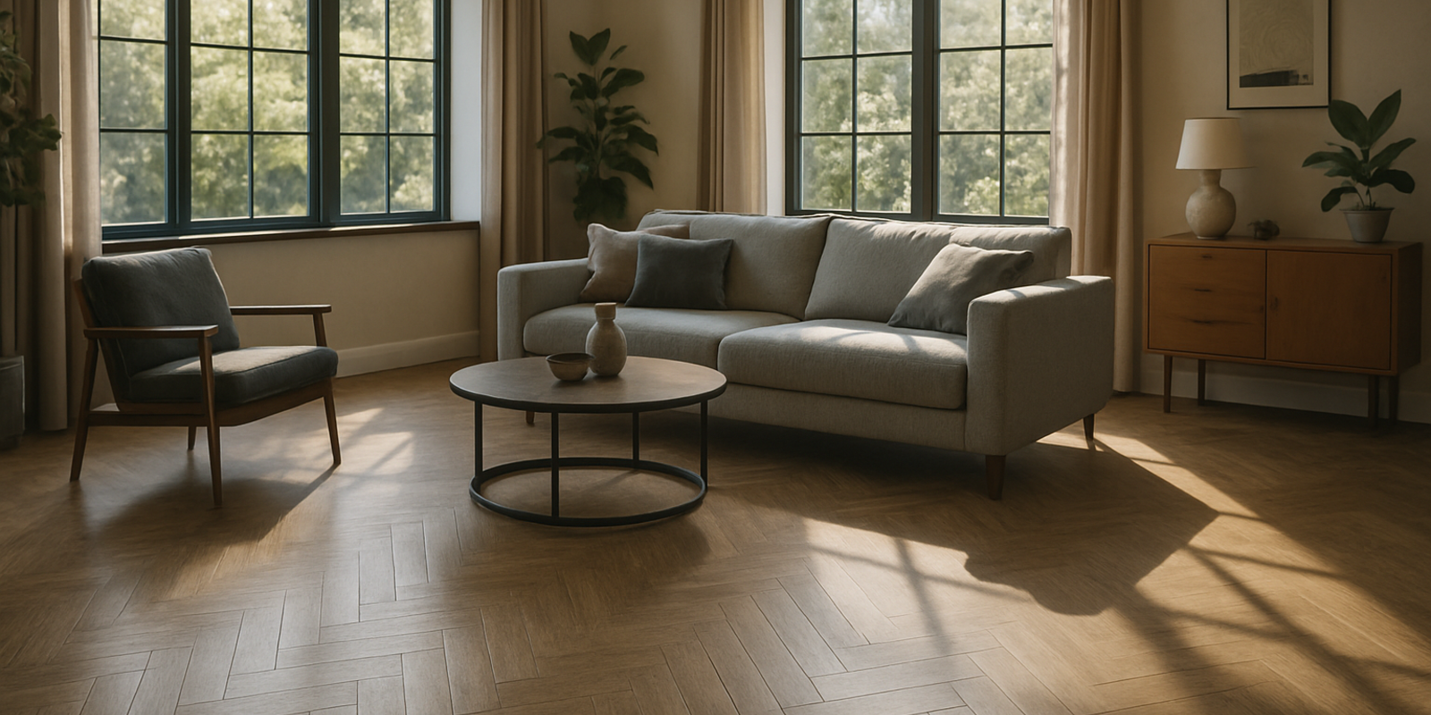 Langdurige blootstelling aan direct zonlicht kan lichte verkleuring veroorzaken. Met zonwering of gordijnen voorkom je dit probleem eenvoudig. Voor extra zekerheid kun je ons kleuradvies interieur inschakelen om je PVC parketvloer perfect af te stemmen op je interieur.