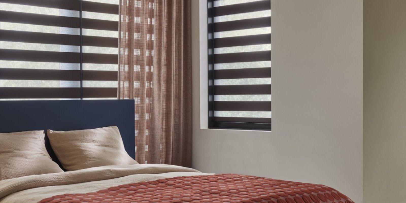 Maatwerk duo rolgordijnen filteren het licht en creëren een aangename sfeer in je ruimte. Voor volledige verduistering, zoals gewenst in een slaapkamer, raden we echter aan om te kiezen voor een verduisterende stof of een extra verduisterend overgordijn. Dit zorgt ervoor dat het licht volledig wordt geblokkeerd. Als je absolute duisternis wilt, kunnen verduisterende rolgordijnen of rolluiken een nog betere optie zijn, omdat deze speciaal ontworpen zijn om zelfs de kleinste lichtstralen buiten te houden.